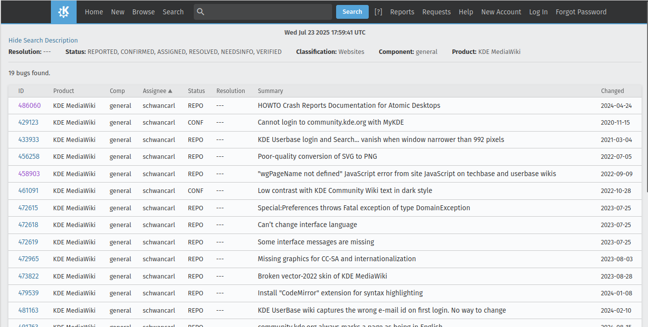 - KDE Bugtracker