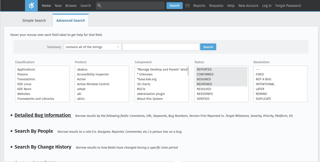 GitlabIn KDE Gitlab(invent.kde.org), coding tasks are organized by project. ![]() Click on the sidebar icon and select issues. ![]() Click on an issue, familiarize yourself with it. ![]() Contribute if you’re confident that you can solve an issue. Read the Readme file and Contribute file. ![]() If you’re a beginner, follow the above steps. Then, in the top search bar, enter “Label,”(remember to press Enter after each) “is,” “Junior Job” or “Beginner Friendly.” You’ll get a list of Beginner tasks. PhabricatorLog in with your identity.kde.org. ![]() Choose Projects on the Left Sidebar. ![]() If you get a “No projects found.” result, click on the “Edit Query” button in the Upper Right corner. ![]() From the “Members” form field, remove your name. ![]() Scroll down and select Project on the “Icons” checklist. ![]() Scroll down and select Search. ![]() Choose a project. ![]() Click on Workboard on the Left sidebar. ![]() Use the Kanban tool to familiarize yourself with a project’s tasks. Click on a task and join the discussion. BugsGo to https://bugs.kde.org/. ![]() Select the Search icon in the middle of the homepage. ![]() If you’ve never used KDE Bugtracker, choose Advanced Search. ![]() Otherwise, use simple search: select a KDE product, enter keyword(s) and Search. ![]() Use the Classification listbox to select a project you’d like to work on. Note, you can use the Shift or the Ctrl button(s) on your keyboard to select multiple projects within the KDE Bugtracker listboxes. Choose a specific product(s) in the Product listbox. Select Component(s) in the Component listbox. Choose Status for a bug. Select Resolution in the Resolution listbox. Click Search above the listboxes next to the search bar. ![]() Choose a bug from the list of bugs generated by KDE Bugtracker. Patch Bugs with KDE Software Developers. |